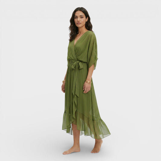 Verónica | Mono largo fluido estilo bohemio sin mangas en tono oliva