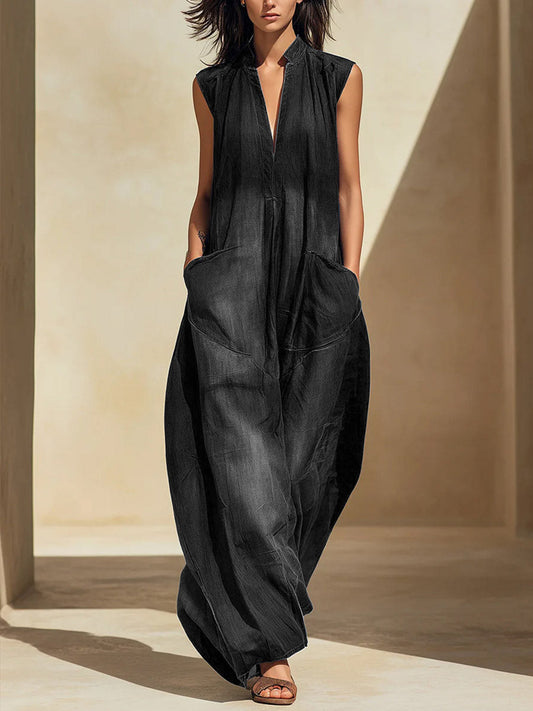 Valeria | Mono vaquero de pierna ancha para mujer, sin mangas, con cuello en V y corte suelto