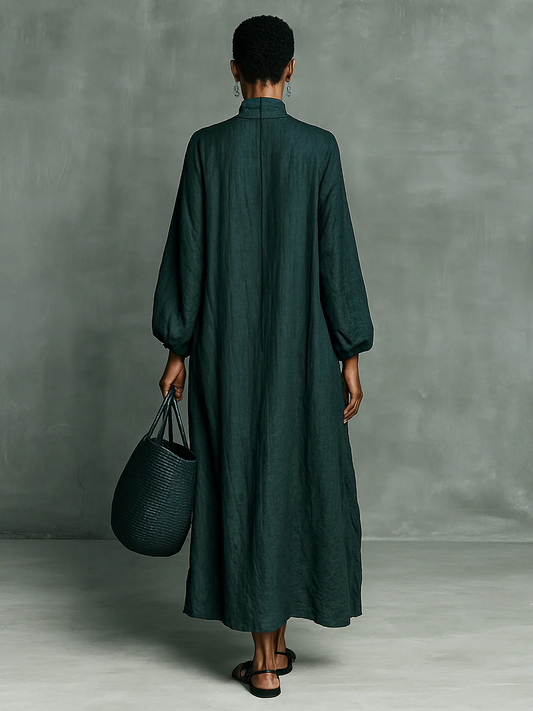 Leticia | Vestido maxi fluido con mangas largas y cuello semi alto